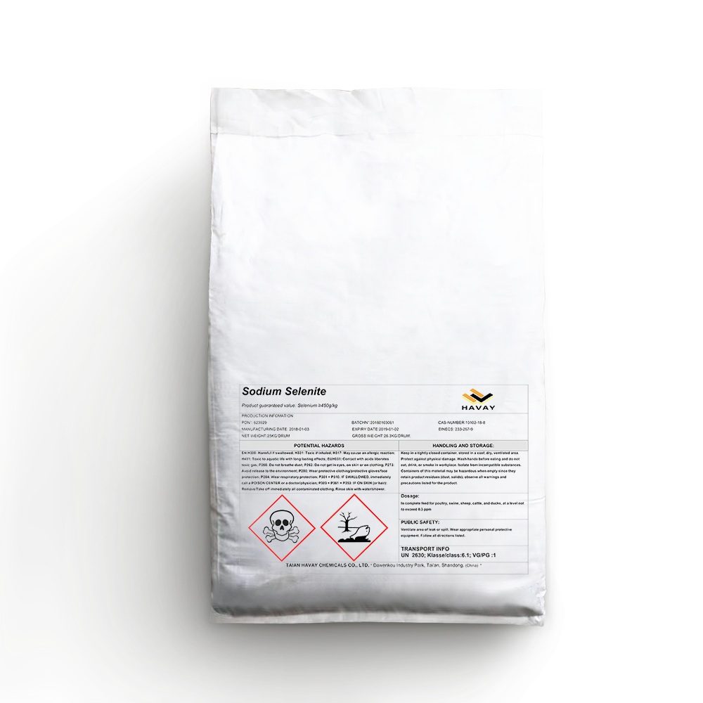 Storage conditions:Feed grade sodium selenite should be stored in a cool, dry place. It is strictly prohibited to mix with other items.